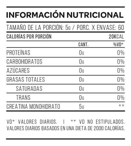 – Creatina monohidrato micronizada de máxima pureza – 100% Pura.